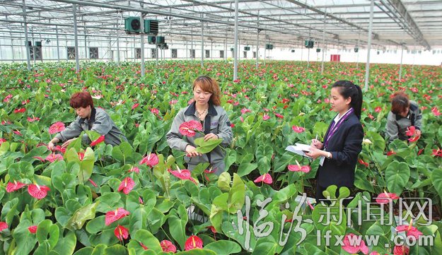 近日,在“百里汾河新型经济带”尧都生态产业园乐视生态农业产业园区,工作人员正在对无土红掌进行管护。