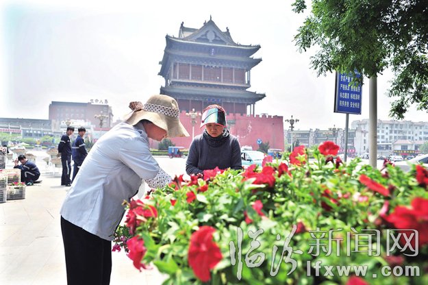 为了迎接即将到来的“五一”小长假,连日来,市园林局将各种花卉摆放到我市的鼓楼广场、平阳广场等地,用鲜花装扮我们的城市,以靓丽的容颜迎接四方宾朋。图为工作人员在鼓楼广场摆放花卉。