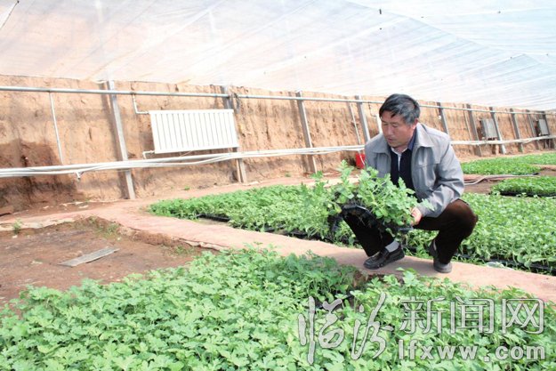 在蔬菜科技服务年活动中,我市广大农业科技人员进园区、进大棚,扑下身子,创新服务,积极开展技术指导和技术培训,提高蔬菜生产科技应用和管理水平,受到农民的欢迎。图为浮山县设施蔬菜技术服务团队技术总监陈永杰正在育苗大棚查看西瓜苗的长势。 本报记者 范韶华 摄