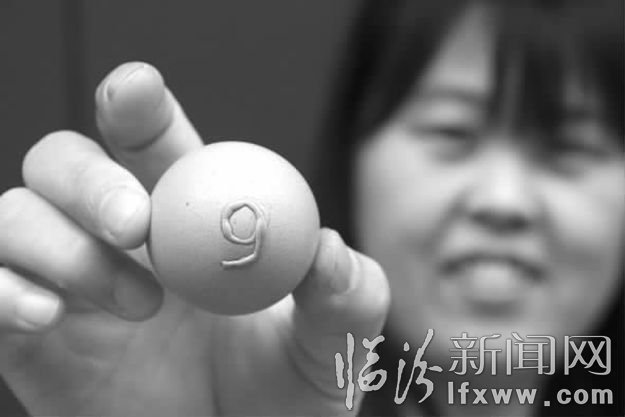 5月23日,尧都区南芦村的张女士在商店购买了10斤鸡蛋,回来后发现有一颗鸡蛋的蛋壳上竟然有一个十分规整的阿拉伯数字“6”或“9”)。张女士说:这个数字咋看都不像是人为弄上去的,应该是鸡下蛋的时候自然形成的。”张女士表示,她以后再买鸡蛋的时候,都会注意看还有没这样的“怪蛋”,希望可以凑齐一串数字。