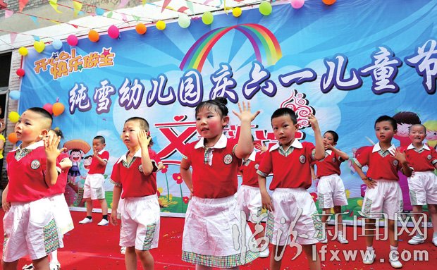 5月25日,纯雪幼儿园的小朋友在表演节目。当日,纯雪幼儿园举办了主题为“阳光下快乐成长”庆“六一”活动,孩子们表演了舞蹈、器乐以及童话剧,在欢歌笑语中庆祝自己节日的到来。 记者 闫锐鹏 摄