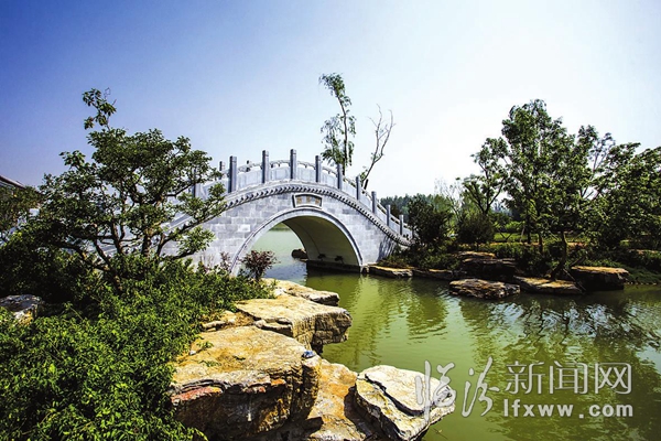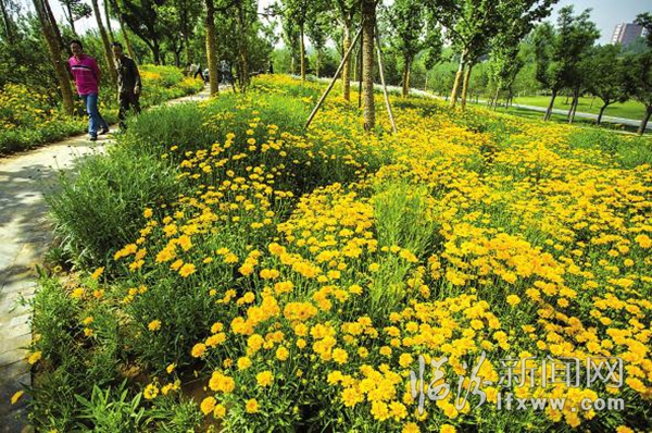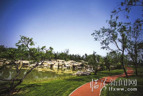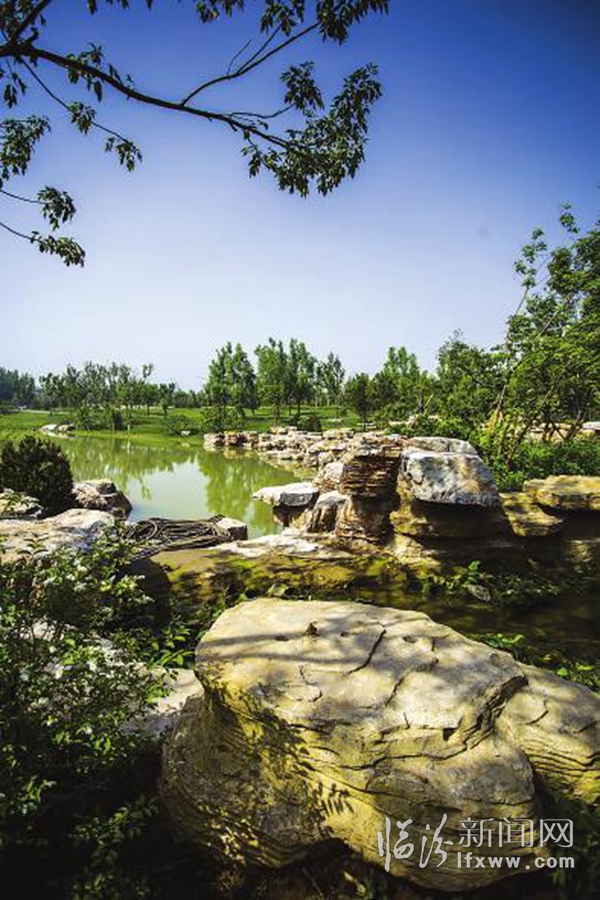 5月26日,记者在涝洰河生态公园看到,该公园建设已基本完成,工人师傅们正在完善公园建设。郁郁葱葱的草地、五颜六色的鲜花、波光粼粼的湖面,构成了一幅幅美丽的图画。