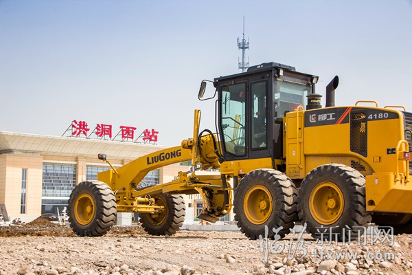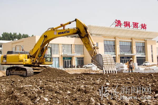 5月30日,施工车辆正在洪洞西站广场紧张作业。 王培基 摄