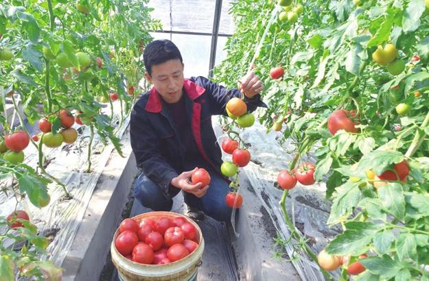 近日,翼城县菁华庄园公司的农民在温室大棚内采摘西红柿。该公司采用“公司+基地+农户”的产业化生产...