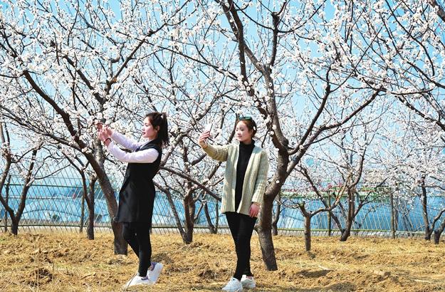 3月22日,在市区汾河公园景区,春柳吐绿,桃花盛开,吸引了众多市民前来踏青游玩。