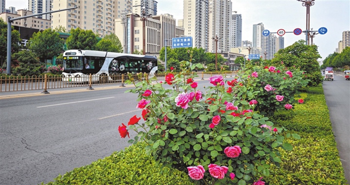4月29日,市区解放东路的月季花竞相开放,成为最美的街景。连日来,市区主干街道繁花盛放,步步皆景...