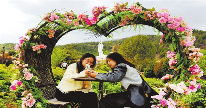 4月29日,游客在古县牡丹文化旅游区拍照打卡。在古县第十八届“天下第一牡丹”文化旅游月系列活动中...
