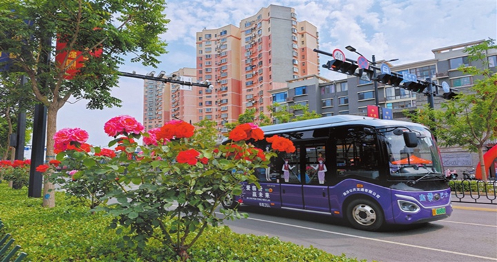 5月4日,在市区贡院街,月季花竞相开放,成为一道亮丽的风景线。“五一”假期,向阳路、贡院街的月季...