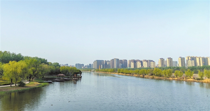 4月10日,在临汾市汾河文化生态景区,汾河碧波荡漾,两岸绿树成荫、鸟语花香,一派生机盎然的景象。...
