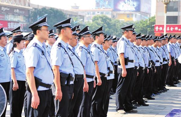 临汾市公安局直属分局在市区平阳广场举行誓师大会