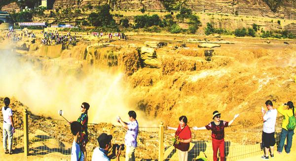 立秋之后,黄河干流迎来秋汛,壶口瀑布水量充沛,水流落差间惊涛汹涌,颇为壮观。图为8月23日,记者在吉...