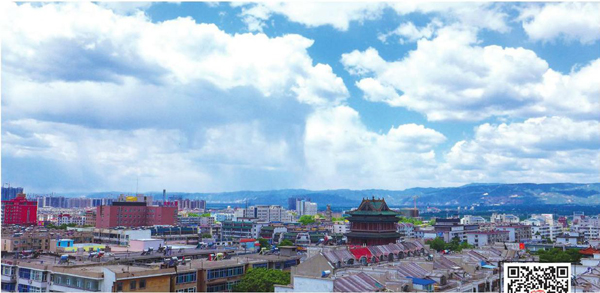 5月11日,临汾市城区在蓝天白云的衬托下显得格外美丽。气象预报显示当日最高气温为22℃,空气质量优良。