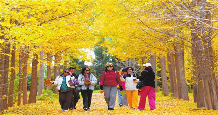 初冬时节,翼城县唐兴镇古城社区的银杏苑内,上千株银杏树披上金色纱衣,绚丽迷人。暖黄色的银杏叶铺...