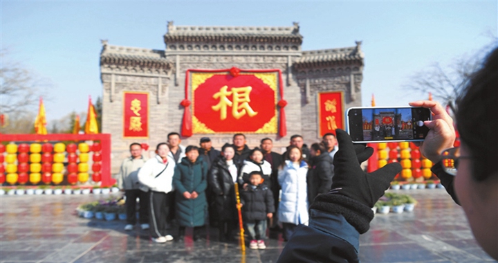 春节期间,洪洞大槐树寻根祭祖园景区持续火爆,各地游客纷至沓来,感受传统文化的魅力。图为近日,游...