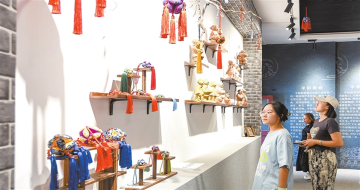 9月24日,在临汾市铁佛寺博物馆,游客在非遗体验馆参观展品。随着“跟着悟空游山西”活动的深入开展...