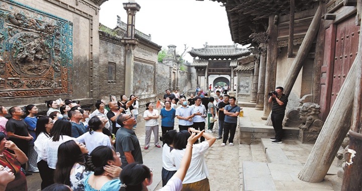 9月11日,游客在襄汾县汾城古镇参观古建筑群。连日来,游戏《黑神话:悟空》火爆海内外,游戏中还原...