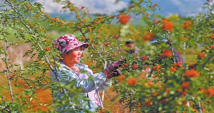 9月19日,襄汾县新城镇柴村村民在采摘山楂。 耕耘有时,收获已至,瓜果飘香是金秋的宝贵馈赠,五...
