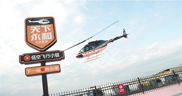 9月20日,观光体验游客在永和县低空飞行小镇乘坐直升机飞跃黄河。 连日来,永和县紧紧围绕中秋、...