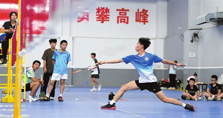 9月22日,在羽毛球赛场,翼城中学选手刘家祥在奋力拼搏。21日至23日,临汾市举办“奔跑吧·少年”中小...