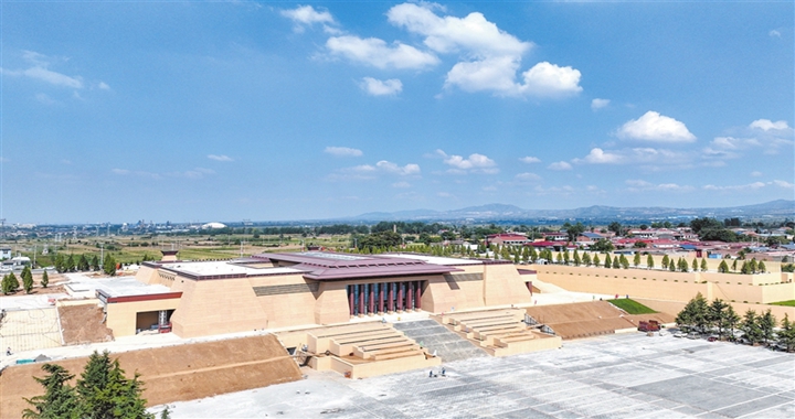 9月23日,航拍镜头下的临汾市陶寺遗址博物馆雏形显现。陶寺遗址博物馆位于襄汾县陶寺乡陶寺村,目前...