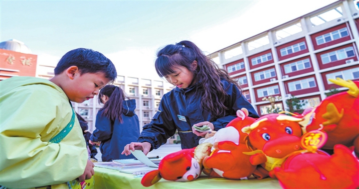 近日,市五一路学校第一期“踅一圈”校园循环集市在教学楼前广场“开集”,小学生们化身“卖家”与“...
