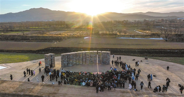 12月21日,在襄汾陶寺国家考古遗址公园观象台,众多游客和天文爱好者在观看冬至日出。当第一缕阳光洒...