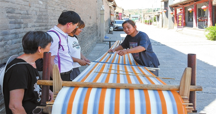 8月20日,游客在襄汾县新城镇丁村体验手工织布。近年来,丁村狗妮土布专业合作社以丁村旅游业发展为...
