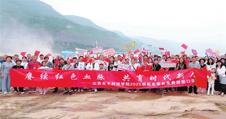 9月13日,山西电子科技学院的新生家长在吉县黄河壶口瀑布景区拍照打卡。9月12至13日,山西电子科技学...