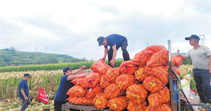 9月14日,乡宁县管头镇山上村村民忙着对采摘好的黄金梨进行分拣、包装。近年来,管头镇创新“党支部+...