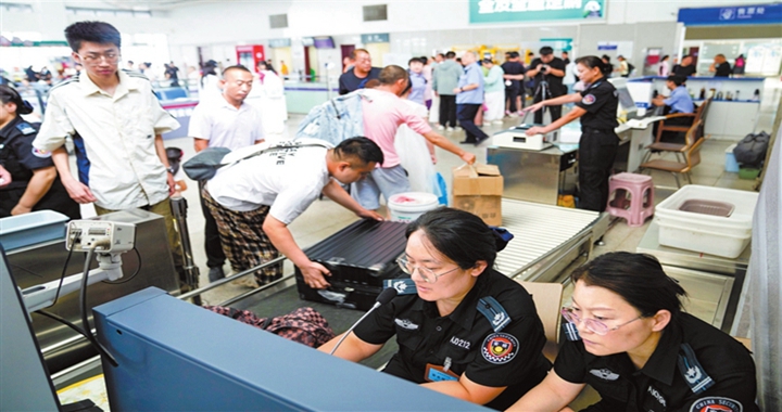 8月25日,临汾西站迎来客流高峰,车站入口处等待安检的旅客排起了长龙。今年暑运开始到目前,临汾西...