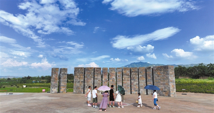 8月21日,在陶寺国家考古遗址公园,游客在陶寺古观象台参观游览。暑期以来,陶寺国家考古遗址公园人...