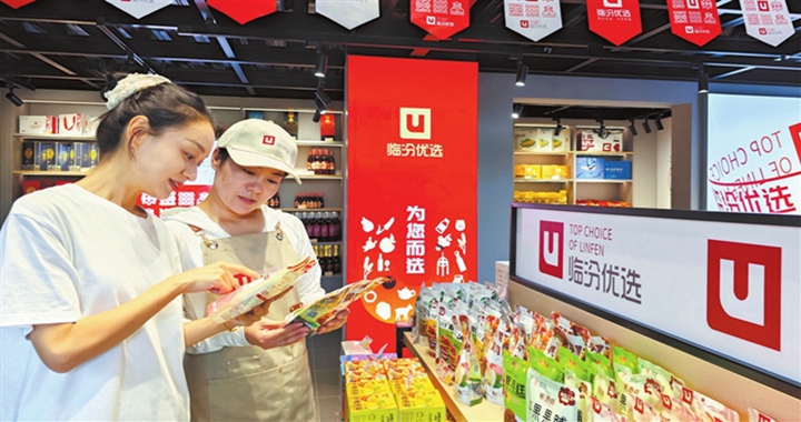9月4日,在市区“临汾优选”御景水城旗舰店,市民在选购临汾特色农产品。截至目前,“临汾优选”已建...