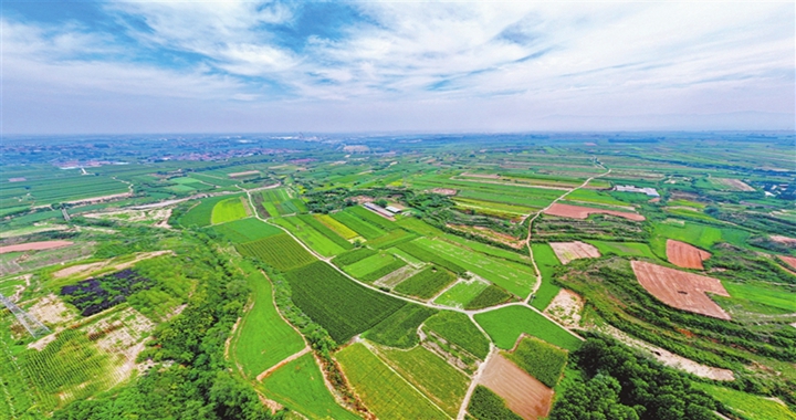 金秋时节,襄汾县南贾镇大张村田野里的秋粮长势喜人,丰收在望,多彩田园与远方的乡村交相辉映,勾勒...