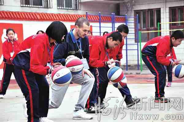 临汾新闻网讯 近日,蒲县团县委、教科局、体育办联合星极体育联盟,举办公益篮球校园行活动。据悉,星极体育联盟为此次活动捐助了价值近万元的篮球及相关运动装备,并派出篮球教练入驻该县2所至3所学校,进行为期一个月的免费篮球支教活动,为山区孩子打造体验篮球运动的平台。图为篮球教练为蒲县北关小学的学生教授篮球技巧。张鹏 摄