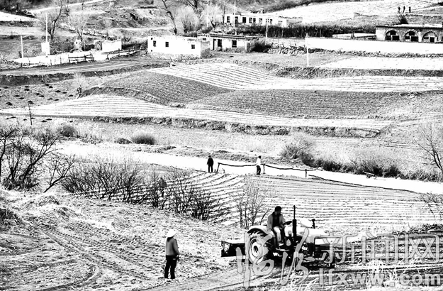 临汾新闻网讯 随着气温逐渐升高,农民趁着好天气抓住有利时节进行播种。图为5月2日,在蒲县克城镇连捷山村,农民们正在忙碌地耕地,呈现出一派繁忙的农村耕田景象。 朱宝林摄