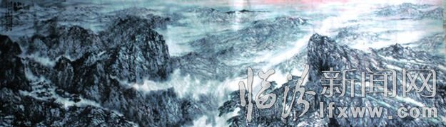 一般人画山水,渲染的是山的挺拔、高大、雄奇、险峻。而他笔下的大山是从天空、从云端向下俯视,群山逶迤、万籁俱寂、曙色笼罩。用这种水墨淋漓效果营造出一种朦胧、湿润的意境,让人真切感受到“会当凌绝顶、一览众山小”之情。苍生感、厚重感油然而生。同时晨曦中曙光在黑与白、虚与实的意境中得以升华。