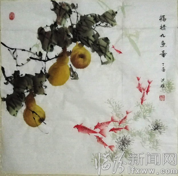 樊洪雄,男,隰州人,职业画家。启蒙于李苦禅的学生毛珍远老师。专工花鸟,山水,偶涉人物。画风潇洒,画意灵秀。现为深圳红木博物馆特聘画家,临汾市文联东方诗书画院秘书长。作品多次参加大型展览且被国际【东南亚】友人收藏。其代表作 “葫芦九鱼图” 深受大家喜爱。在江西省组织的纪念红军长征胜利70周年全国书画征稿比赛中,作品 “井冈魂” 获一等奖并永久收藏。