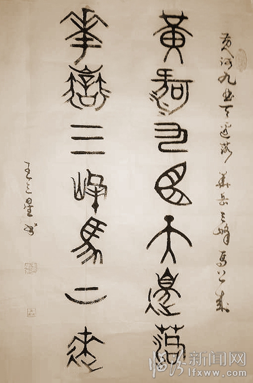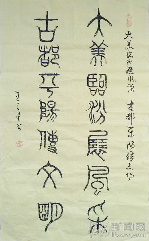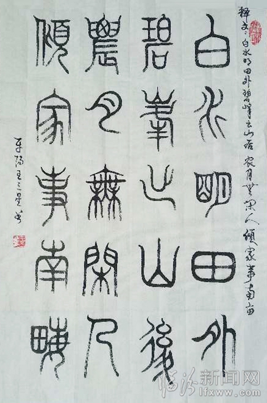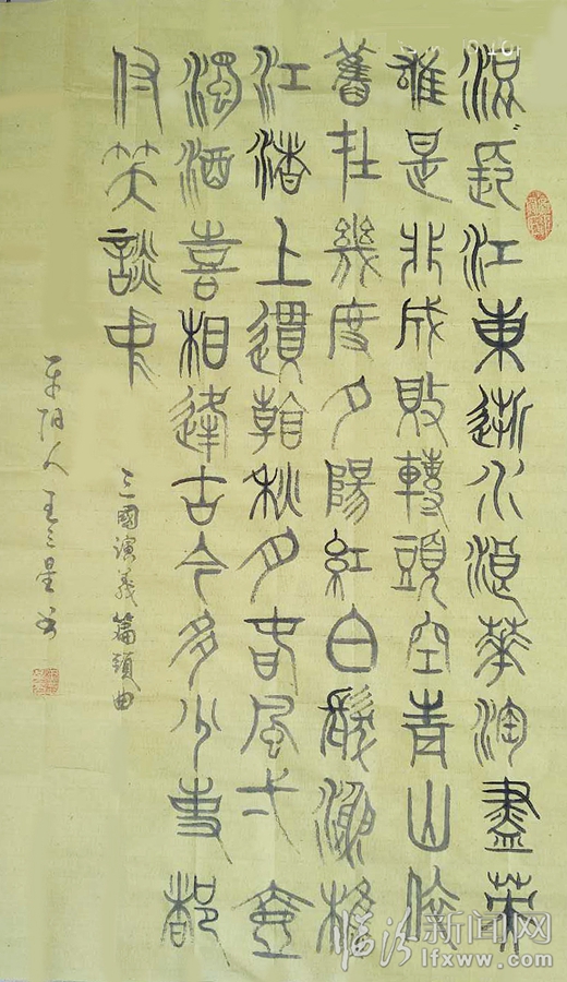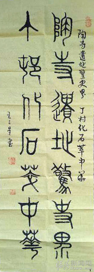 作者艺术简历:王三星,男76岁,尧都区毵淇村人,系原临汾市委宣传部副部长兼市委讲师团团长。中国老年书画会会员,山西省硬笔书协会员,临汾市老年书画会常务副主席。书法以草篆见长,多次参加省及全国书法大赛并多次获奖。作品入选全球华人书画家邀请展,中国人民解放军历史陈列馆永久收藏,与人合作举办过书法展览。著有并出版《求知与劳作》《王三星书法习作》,主编有《中国临汾》《风景这边独好》《华夏第一都——临汾》《晋商史料全览临汾卷》《临汾宣传55年》《祖国颂》等书。