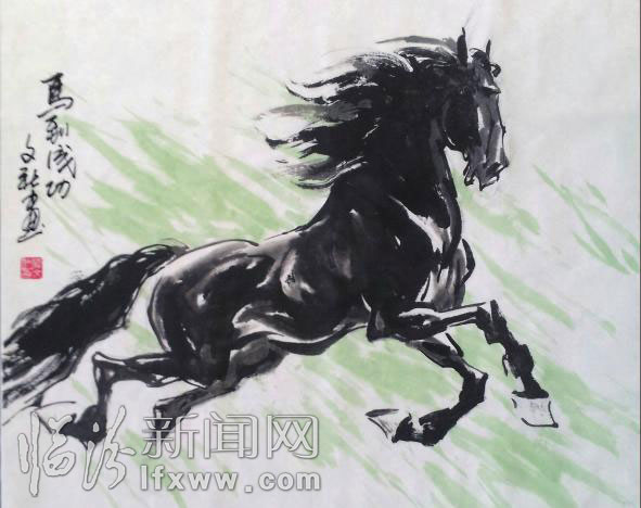 文社之书作,字形清秀,圆润婉转,上下错落,跌宕起伏。有节奏、有韵致、有玩趣,作为业余书家,有此造诣,已属不易。建议多临名帖,尤以颜楷、王行、孙草为要,若坚持不懈、苦练数载,定会有长足进益,大器晚成矣!——侯天元文社一直从事群众文化艺术工作,在繁忙的工作之余始终坚持书画创作和研究,并取得了一定成绩。近年来专攻写意马,所画之马造型准确、结构清晰、线条流畅且松弛,笔墨丰富,马的精神状态良好。希望在意蕴传神方面多下工夫。——李洪泽