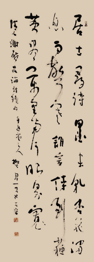 樊习一,1940年生,祖籍山西夏县,定居临汾。幼承家父与乡师启蒙,初识楷则。青年时代师取郭沫若书法,几可乱真。上世纪八十年代始主攻书法。以古为师,溯本求源。积半世不舍之功,而道艺渐臻佳境。追求艺术的多元,而又万变不离其宗。书法诸体兼工,尤以小楷、行草、古隶、榜书见著。各体书作曾入选全国二、五届书展、国际书展、全国二届中青展、全国二届正书展、中日书展、中韩书展等,多次在全国性书展中获奖,并有作品出展法国、加拿大、台湾、香港、澳门等。传略及作品收入《中国当代书法家辞典》、《中国古今书法家辞典》、《中南海珍藏书法集》、《中南海楹联书法集》、《北大百年百联》等多部辞书。众多作品为国内多家博物馆(院)及国内多处人文胜地收藏或刊石。2000年秋出访日本,作书艺交流。有《樊习一书法》、《樊习一书法艺术》、《樊习一书法精品选》、《樊习一行草书卷陶渊明美文三篇》等作品集行世。与此同时,倾心书法培训教学凡数十年,在临汾乃至山西,培养书法新人,已是桃李满园。曾任临汾市书协主席、临汾市博物馆首任馆长、山西省书协副主席、中国书协评审委员。现任山西省书协艺术指导委员会副主任、山西师大中国书画研究所客座教授、中国书法家协会书法培训中心教授、国家一级美术师、中国书法最高奖——第二届中国书法兰亭奖获得者,为享受国务院特殊津贴专家。 来源:人民网-人民日报海外版