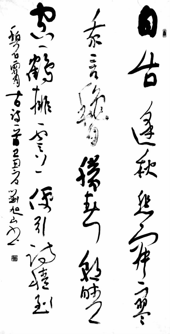 刘旭山,1973年5月生,山西吉县人,自幼随父学书,上初中时开始临习各类古人优秀碑帖。1991年参加工作,1996年结业于中国书画函授大学书法本科专业。多年来,个人书法作品先后在各类比赛、展览中获奖60余次,在全国各类专业报纸及杂志发表30余篇。出版了个人作品集和硬笔字字贴,在县城创办了星期天书法班,先后培训学生千余人。现为山西省书法家协会会会员、临汾市书法家协会常务理事吉县文联主席、吉县书法家协会主席、县政协委员。