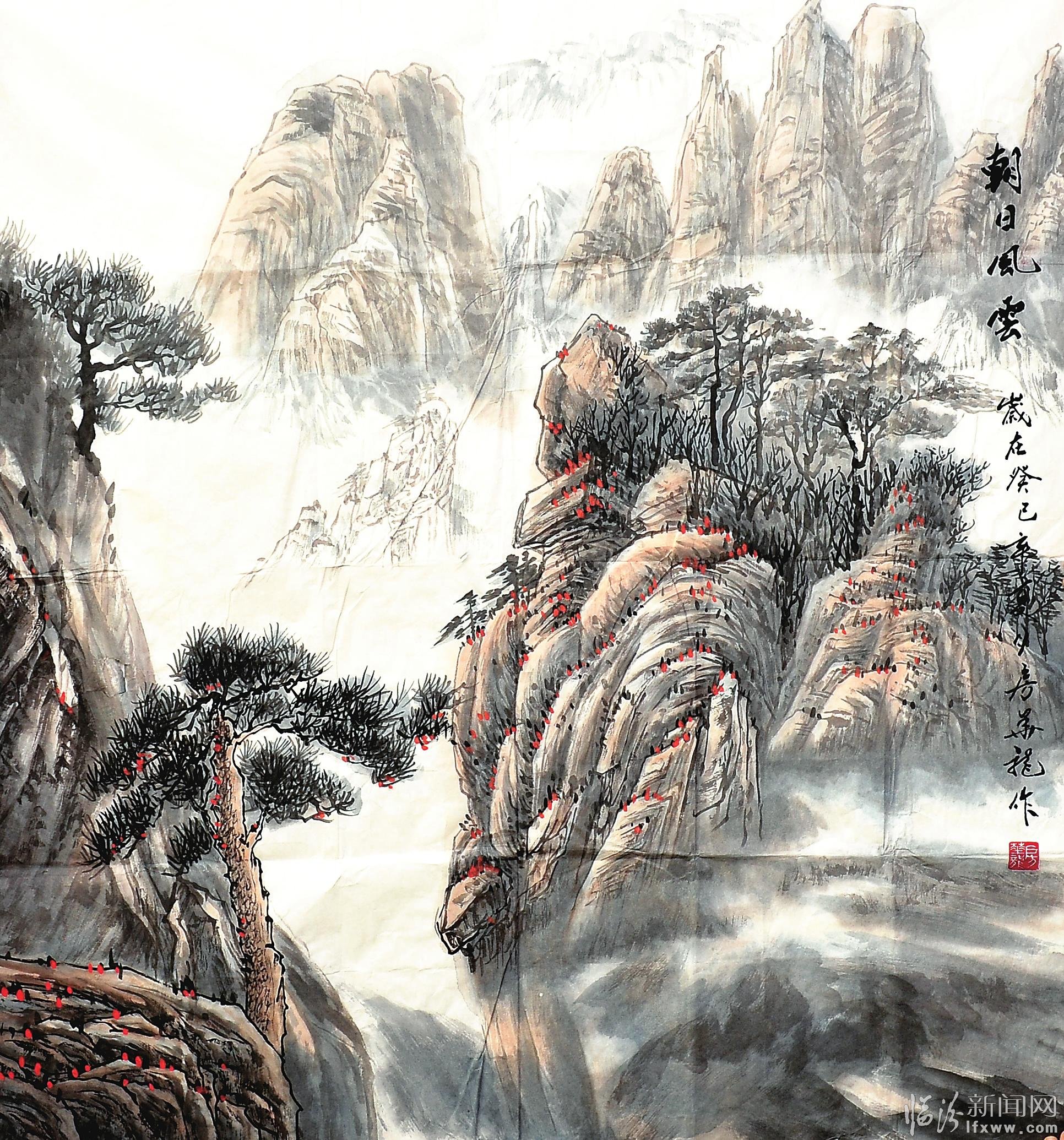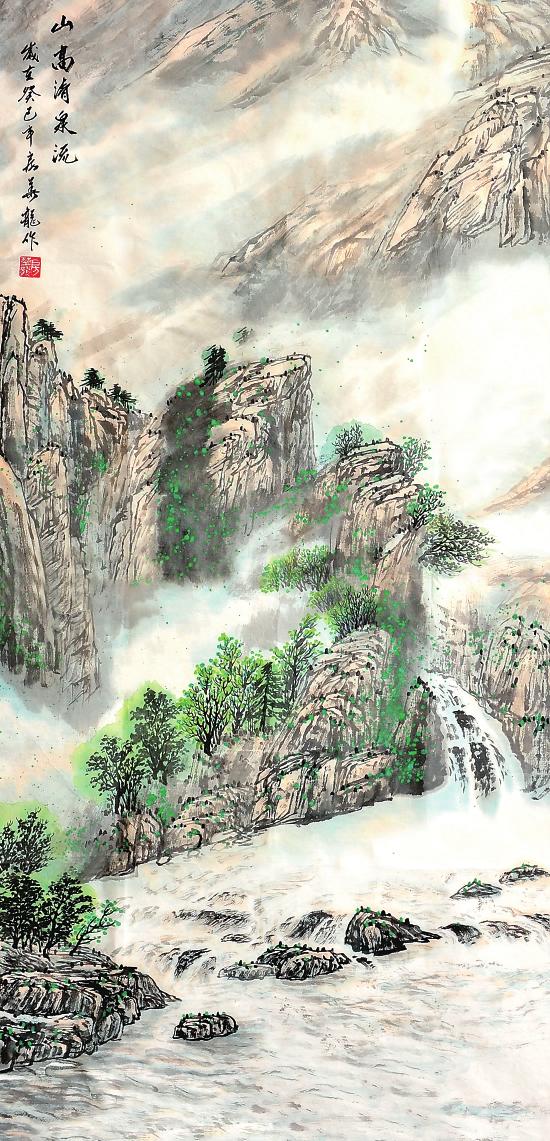 房华龙先生基本功扎实,学养好,步履坚实,路子正。加之谦恭勤奋,广采博学。他的画注重大山的气势、云水的涌动,近景远山层次分明,可观、可行、可居,内容丰富,且不满足于逸笔草草光怪陆离的所谓趣味。作品中可以看到现代山水名家曾刚和王中年的笔意,领悟到现代山水画的时代气息。 ——高国宪