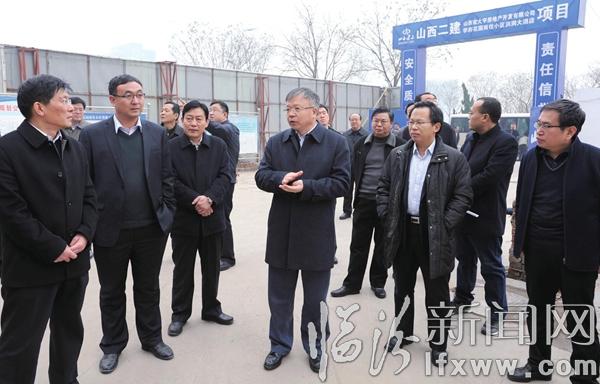 图为岳普煜在洪洞县学府花园建筑施工工地调研停工整改情况。记者 赵俊堂 摄