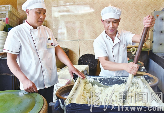 临汾新闻网讯 9月7日,在霍州市开元街道办李诠庄居委会李志峰豆腐坊,工作人员正在加工豆腐。