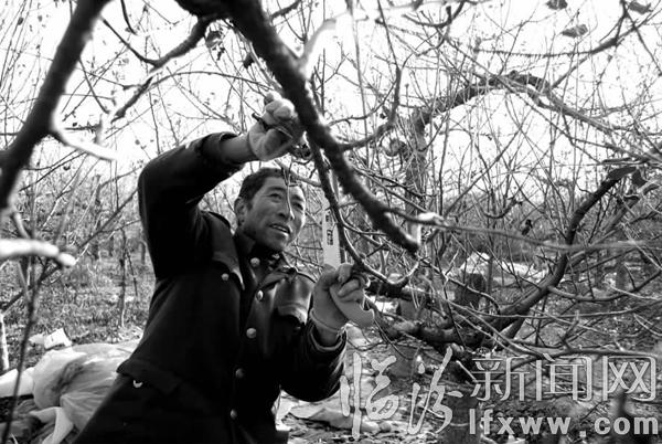 临汾新闻网讯 冬季是苹果树的休眠期,连日来,曲沃县北董乡的果农们抓住有利时机,对果树进行冬剪、除虫、土壤施肥、涂白等管理,确保来年有个好收成。图为裴庄村村民正在给苹果树进行修理剪枝。