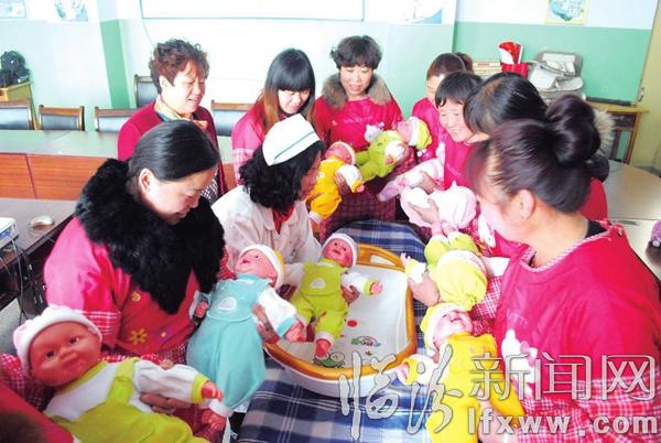 临汾新闻网讯 2月24日,在曲沃县新潮职业技能培训中心,工作人员正在对农村妇女进行家政服务培训。春节刚过,该校针对大城市保姆、月嫂短缺现象,组织近百名妇女分批进行集中培训,输送到北京、天津、太原等地从事家政服务,帮助她们增加收入。张荣 摄