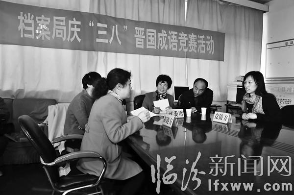 临汾新闻网讯 3月8日,曲沃县档案局举办了晋国历史成语竞猜比赛。他们把一千多条出自于晋国的成语典故当做考题,用必答、抢答、互问互答、你比划我猜等形式,决出一、二、三等奖,极大地增长了大家的知识,有效地传播了优秀的传统文化,丰富和活跃了全体干部职工的业余文化生活。
