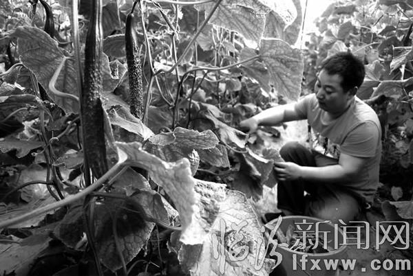 临汾新闻网讯 近日,曲沃县乐昌镇安吉村智能温室大棚里,村民宋艳斌正在给黄瓜剪叶、掐丝管理,以促进通风、增产。近年来,安吉村依托长期形成的蔬菜种植优势,建起20多栋冬暖式日光温室大棚,收到良好经济收益。 (张荣)