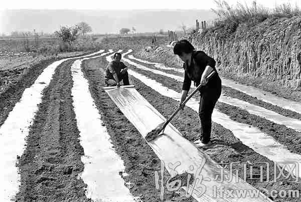 临汾新闻网讯 时下正是田间管理的关键时期,曲沃县史村镇望绛村村民抓住墒情开始犁地、播种、施肥、压膜等。图为该村村民正忙着铺地膜种红薯。(张荣)