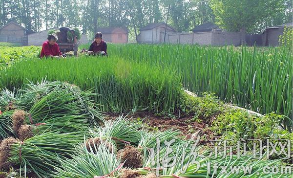 临汾新闻网讯 近年来,曲沃县北董乡依靠土地肥沃、水资源充足等有利条件,大力发展蔬菜种植,形成了产销两旺的局面,有效增加了当地农民的收入。图为该县许家堡村村民甄根平一家正在田间挖葱捆绑,等待菜贩上门收购。(张荣)